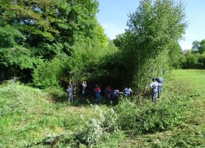 Chantier-école sur un fossé envahi de ligneux, avec une classe du lycée agricole du Cher en 2018.