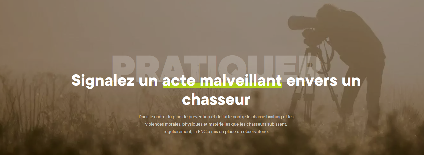 La FNC a pour ambition de faire de cette plateforme un véritable baromètre des violences subies par les chasseurs dans l’exercice de leur loisir. Cet outil nous permettra de lutter contre la banalisation de ces violences, touchant malheureusement diverses catégories de la population, les chasseurs n’étant pas épargnés.
